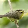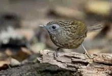黄喉雀鹛是雀眉科、拟希鹛属小型鸟类,体长11-12厘米。头顶浅黄色具黑色鳞状斑,头顶两侧各有一道黑色侧冠纹,眉纹浅黄色、长而宽阔。上体灰绿色,两翅和尾褐色而具浅黄色窄缘。下体淡黄色。特征明显,…全部>>