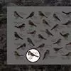 家麻雀:共有13个亚种。是小型鸟类,体长14-16厘米。背栗红色具黑色纵纹,两侧具皮黄色纵纹;颏、喉和上胸黑色,脸颊白色,其余下体白色,翅上具白色带斑。雄鸟与树麻雀的区别在顶冠及尾上覆羽灰色,耳无黑…全部>>