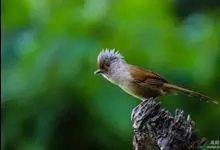 栗额斑翅鹛是噪眉科、斑翅鹛属中型鸟类,体长20-23厘米。头顶具浓密的羽冠,前额栗棕色,头顶灰褐色。上体棕褐色,两翅棕褐色具黑色横斑,翅基外缘有一黑斑,尾呈凸状,棕褐色具黑色横斑。下体棕褐色,…全部>>