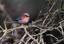 凤头雀莺:小型鸟类。体长9-10厘米,雄鸟呈毛茸茸的紫色和绛紫色,顶冠淡紫灰色,额及凤头白色,尾全蓝。雌鸟喉及上胸白,至臀部渐变成淡紫色,耳羽灰,…全部>>