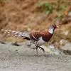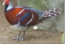 白颈长尾雉:大型鸡类,体长81厘米,体型大小和雉鸡相似。雄鸟头灰褐色,颈白色,脸鲜红色,其上后缘有一显著白纹,上背、胸和两翅栗色,上背和翅上均具1条宽阔的白色带,极为醒目;下背和腰黑色而具白斑;腹白…全部>>