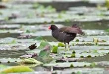 黑水鸡:是鹤形目、秧鸡科的鸟类,共有12个亚种。中型涉禽,体长24-35厘米。嘴长度适中,鼻孔狭长;头具额甲,后缘圆钝;嘴和额甲色彩鲜艳。翅圆形,第2枚初级飞羽最长,或第2枚和第3枚初级飞羽等长,…全部>>