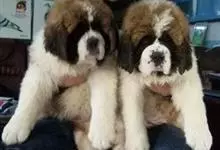 圣伯纳犬,别名巴里汉德,属于大型工作犬,肩高约65~90厘米,体重约50~90千克。圣伯纳犬身体强壮,被毛红褐色和白色相间,头圆而宽大。颈部强壮,胸宽深,背直。前肢长直,腕关节略前倾,后肢腿骨粗壮,…全部>>