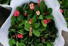 铁海棠为大戟科大戟属蔓生灌木植物;茎多分枝,具纵棱,呈旋转状;叶互生,通常集中于嫩枝上;每个花序基部边缘具微小的红色尖头;苞叶先端圆且具小尖头,无柄,上面鲜红色,下面淡红色;苞片丝状;子房光滑无毛,…全部>>