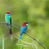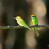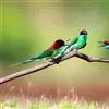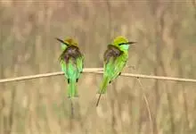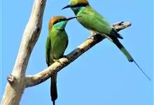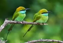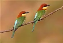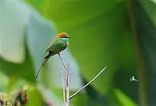 绿喉蜂虎是佛法僧目、蜂虎科的小型鸟类,共有9个亚种。身长22-25厘米,翼展29-30厘米,体重15-20克。喉绿色,额部、头顶至上背为锈红色,其余上体均为亮绿色。中央尾羽延长且端段狭细,…全部>>