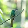 蓝须夜蜂虎是佛法僧目、蜂虎科的鸟类,体长约30厘米,是绿色林栖型蜂虎,蓝色的胸羽蓬松,嘴厚重而下弯。成鸟顶冠淡蓝,腹部棕黄带绿色纵纹。尾羽腹面黄褐。亚成鸟全身绿色。喉、胸部中央的羽甚长和亮色;该物种…全部>>