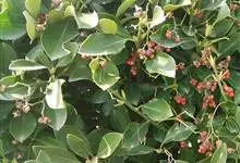 冬青卫矛,是卫矛科卫矛属灌木植物,聚伞花序,花白绿色,花萼裂片半圆形,花瓣近卵圆形,花盘肥大;蒴果近球形,熟时淡红色;叶对生,革质,倒卵形或椭圆形,先端圆钝,基部楔形,…全部>>