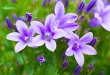 丛生风铃草:植株高20-40厘米。基生叶圆心形,叶片上部较窄成圆卵形;花朵单生,有较长的花梗;花萼裂片钻形;花冠宽钟状,白色,蓝色,粉红色或紫色。花期3-8月。全部>>