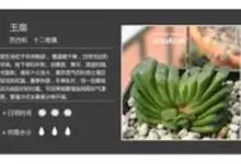 绿玉扇是芦荟科十二卷属多年生常绿多肉植物。无茎,株高5-8厘米;肉质叶左右排成两列呈扇形,叶片直立,稍向内弯,表面略显粗糙,绿色至暗绿褐色,新叶的截面部分透明,呈灰白色。总状花序,花细筒状,白色,中…全部>>