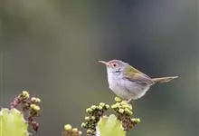 普通缝叶莺,是雀形目鹅科莺亚科缝叶莺属一种。体长10-14厘米,体重7-10克,雄鸟前额棕红,头顶至枕棕橄榄褐,上体橄榄绿染黄,飞羽及尾羽暗褐;繁殖期雄鸟的中央尾羽特形延长,下体淡皮黄白色。…全部>>