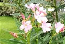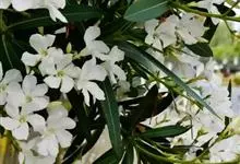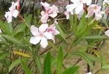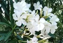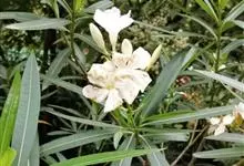 白花夹竹桃是夹竹桃科、夹竹桃属植物夹竹桃的栽培品种。常绿直立大灌木,枝条灰绿色;嫩枝条具稜,被微毛,老时毛脱落。叶3-4枚轮生,下枝为对生,叶面深绿,叶背浅绿色;侧脉纤细平行与中脉成直角;叶柄扁平,…全部>>