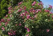 夹竹桃,又名红花夹竹桃、欧洲夹竹桃,是夹竹桃科夹竹桃属的一种常绿直立大灌木,枝条灰绿色,含水液。叶披针形,3叶轮生。聚伞花序顶生,花冠粉红至深红色,花冠漏斗状,有特殊香味。蓇葖果,圆柱形。种子长圆形,…全部>>