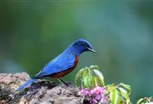 栗腹矶鸫是鸫科、矶鸫属小型鸟类,体长20-25厘米。雄鸟上体呈辉亮的钴蓝色,两翅黑褐色,喉蓝黑色,其余下体栗红色。雌鸟上体橄榄褐色,背具黑色鳞状斑,下体棕白色密杂以黑褐色横斑,黑白相衬,极为醒目,…全部>>