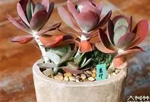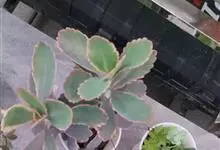 江户紫,景天科伽蓝菜属草本植物,是多年生草本花卉。花白色,但栽培中很少能见到花,常作观叶植物栽培。…全部>>