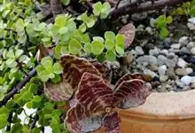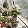 仙女之舞是景天科、伽蓝菜属植物。常绿肉质灌木,株高可达2-3米。幼株茎上有毛。叶有柄;单叶对生,阔卵状三角形,肉质;新叶开展,老叶正面凹、背面圆凸,缘具稀锯齿,橄榄绿色至灰绿色,被稠密的灰白色毛。…全部>>