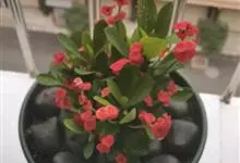 铁海棠为大戟科大戟属蔓生灌木植物;茎多分枝,具纵棱,呈旋转状;叶互生,通常集中于嫩枝上;每个花序基部边缘具微小的红色尖头;苞叶先端圆且具小尖头,无柄,上面鲜红色,下面淡红色;苞片丝状;子房光滑无毛,…全部>>