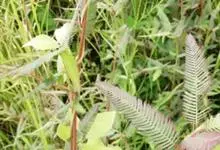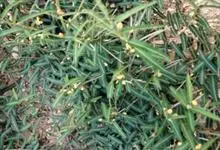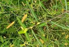 合萌,别名田皂角、水松柏、水槐子、水通草,中药名:梗通草。豆科一年生草本或亚灌木状植物,茎直立,叶对生,总状花序,腋生,花萼膜质,花冠淡黄色,子房扁平,线形。种子黑棕色,肾形,花果期7~10月。…全部>>