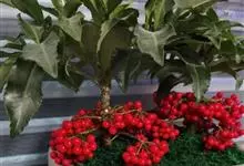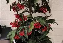朱砂根是报春花科紫金牛属植物,又名铁凉伞、红铜盘、百两金、大罗伞、开喉箭等,为常绿小灌木,高1~2米,茎粗壮,无毛,除侧生特殊花枝外,无分枝,叶片革质或坚纸质,椭圆形、椭圆状披针形至倒披针形,…全部>>