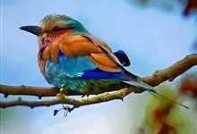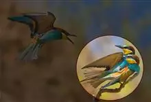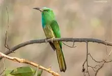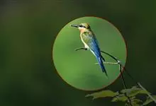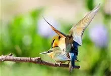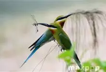 蓝喉蜂是蜂虎科蜂虎属鸟类。体长26-28厘米,嘴长而弯曲,有明显细长的中央尾羽。头部、颈部和背部为巧克力色,有黑色眼纹。喉部、腰部和尾羽为蓝色。腹部和两翼为绿色。幼鸟外观似成鸟,头部、颈部和背部为绿色,…全部>>