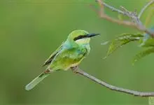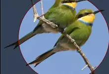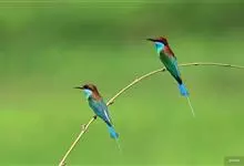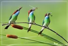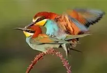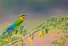 蓝颊蜂虎:是蜂虎科、蜂虎属的鸟类,共有2个亚种。体长27-33厘米,翼展46-49厘米,体重38-50克。嘴形细长而下弯,先端尖,…全部>>