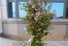 大花六道木,忍冬科六道木属半常绿矮生灌木。其幼枝为红褐色,有短柔毛;叶片倒卵形为墨绿色,有光泽;花粉钟形为白色;圆锥花序,开花繁茂;花期长,5~11月持续开花。…全部>>