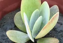 唐印为景天科伽蓝菜属的多年生肉质草本植物。植株中型,株高50厘米,宽20厘米,多分枝;叶片肉质,对生,卵形,全缘,先端钝圆,叶片淡绿色至灰绿色,表面被有厚厚的白粉,光照充足时,叶缘呈红色;圆锥花序,…全部>>