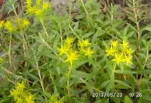 垂盆草别名石头菜、狗牙瓣、豆瓣菜等,为景天科景天属的多年生草本植物。不育枝及花茎细,匍匐而节上生根,直到花序之下;3叶轮生,叶倒披针形至长圆形,先端近急尖,基部急狭,有距;聚伞花序,花无梗,…全部>>