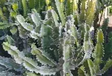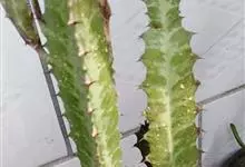 魁伟玉原产南非,是一种大戟科的多年生肉质植物,植株具粗圆筒形肉质茎,有10条以上的突出棱,表皮绿色至灰绿色,披有白粉,有较为明显、平行排列的深色横肋,刺生于棱缘上,红褐至深褐色,易脱落。小叶早脱落,…全部>>