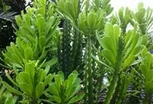 金刚纂,是大戟科大戟属的肉质灌木状小乔木。茎圆柱状,上部多分枝,叶片互生,少而稀疏,顶端钝圆,基部渐狭;花序二歧状腋生,苞叶膜质,总苞阔钟状,裂片半圆形,边缘具缘毛,雄花多枚;花期6-9月。…全部>>