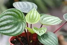 西瓜皮椒草 E. Morren)是胡椒科、草胡椒属植物。多年常绿草木,株高约15-20厘米。根茎顶端从生状抽生长长的叶柄,红褐色的叶柄上端着生单叶。叶片卵圆形至心脏形,向叶柄内反卷成半圆形。穗状花序,…全部>>
