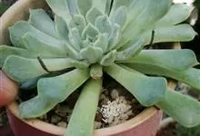 蓝石莲是景天科、拟石莲花属的多肉植物。茎部粗壮,成熟植株茎部木质化。叶片莲座型密集排列,株径不会很大,叶片相对较薄,常年绿色,表面布有白色粉末,中部凹陷,呈倒水滴状。叶尖较尖,叶缘光滑无褶皱,…全部>>