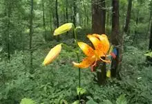 东北百合,别名卷莲花、老哇芋头、轮叶百合、伞蛋花、山丹花,为百合科、百合属多年生球根花卉。鳞茎卵圆形,白色,有节。苞片叶状,花淡橙红色,具紫红色斑点;花被片稍反卷,蒴果倒卵形,花期7-8月,果期9月,…全部>>
