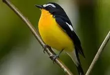 白眉姬鹟是小型鸟类,体长11-14厘米。雄鸟上体大部黑色,眉纹白色,在黑色的头上极为醒目。腰鲜黄色,两翅和尾黑色,翅上具白斑。下体鲜黄色。雌鸟上体大部橄榄绿色。腰鲜黄色,翅上亦具白斑。下体淡黄绿色。…全部>>