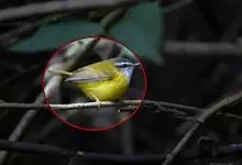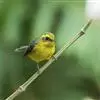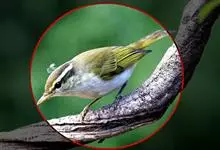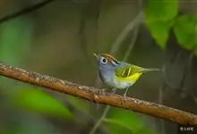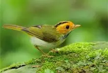 黑脸鹟莺:体长10厘米,是有特色的体小而多彩的莺鸟。粗眉纹,颏、喉及尾下覆羽黄色,脸罩黑,头顶及颈背灰色,上体绿,无翼纹,腹白。虹膜褐色;上嘴色深,下嘴肉色;脚偏绿色。…全部>>