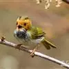 棕脸鹟莺:体长10厘米,是一种色彩亮丽而有特色的莺鸟。头栗色,具黑色侧冠纹。上体绿,腰黄色。下体白,颏及喉杂黑色点斑,上胸沾黄。与栗头鹟莺的区别在头侧栗色,白色眼圈不显著且无翼斑。…全部>>