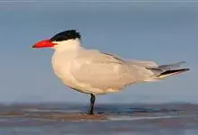 红嘴巨鸥,大型水鸟,体长47~55厘米。夏羽前额、头顶、枕和冠羽黑色。后颈、尾上覆羽和尾白色,尾呈叉状。背、肩和翅上覆羽银灰色。眼先和眼及耳羽以下头侧白色;颏、喉和整个下体也为白色。冬羽和夏羽大致相似,…全部>>