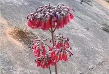 伽蓝菜是景天科伽蓝菜属植物。多年生草本,高20-100厘米。叶对生,中部叶羽状深裂,全长8-15厘米,裂片线形或线状披针形。聚伞花序排列圆锥状,长10-30厘米;苞片线形。花期3月。…全部>>