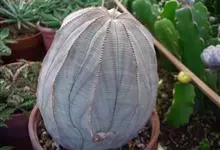 布纹球是大戟科、大戟属植物。植株小球形,直径8-12厘米。具棱8,整齐。表皮灰绿色中有红褐色纵横交错的条纹,顶部条纹较密。棱缘上有褐色小钝齿。雌雄异株,雌株球体较扁,雄株茎圆筒形,均为单生,…全部>>