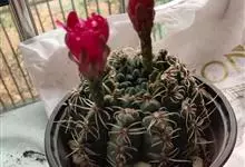 仙人球花 仙人掌科,仙人球属。植株单生或成丛。幼株球形,老株长成圆筒状,高可达75厘米,直径12-15厘米。球体暗绿色,具棱11-12。刺锥状,黑色,长1-1.5厘米。花着生于球体侧方,大型嗽喇叭状…全部>>