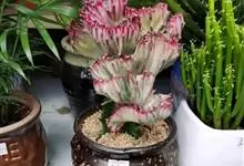 彩春峰是大戟科大戟属肉质植物,彩春峰的肉质茎依品种的不同有暗红色、乳白、淡黄及镶边、斑纹等复色。彩春峰的性状很不稳定,栽培中经常会发生色彩的变异,如暗紫红色肉质茎会长出白色黄色斑块等。…全部>>