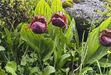 西藏杓兰:植株高15-35厘米,具粗壮、较短的根状茎。茎直立,无毛或上部近节处被短柔毛,通常具3枚叶。叶片椭圆形、卵状椭圆形或宽椭圆形。花序顶生,具1花;花苞片叶状,椭圆形至卵状披针形,花大,俯垂,…全部>>
