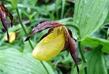 黄花杓兰:植株通常高30-50厘米,具粗短的根状茎。茎直立,密被短柔毛,基部具数枚鞘,鞘上方具3-6枚叶。叶片椭圆形至椭圆状披针形。花序顶生,通常具1花,罕有2花;花黄色,有时有红色晕,…全部>>