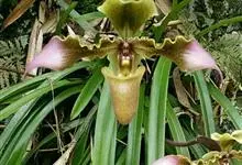 兜兰是兰科兜兰属的多年生草本植物。根茎粗状,直径3~4毫米,有很多须根;叶基生,叶片肉质增厚,排成紧密2列,叶片呈长圆形,表面有极短柔毛;总状花序,粉白色,花葶直立或倾斜,深绿色或褐色,花瓣大,呈唇形,…全部>>