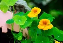 旱金莲是旱金莲科旱金莲属蔓生一年生草本植物。叶互生,叶柄向上扭曲,盾状,叶圆形,具波状浅缺刻,下面疏被毛或有乳点;花黄、紫、桔红或杂色,花托杯状,花瓣为圆形,边缘具缺刻;果实为扁球形;花果期6-10月,…全部>>