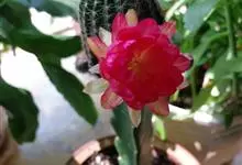 仙人球花 仙人掌科,仙人球属。植株单生或成丛。幼株球形,老株长成圆筒状,高可达75厘米,直径12-15厘米。球体暗绿色,具棱11-12。刺锥状,黑色,长1-1.5厘米。花着生于球体侧方,大型嗽喇叭状…全部>>