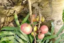 大果榕是桑科榕属的小乔木,株高可达10米;幼枝被柔毛;叶互生,宽卵状心形或近圆形;雄花无梗、匙形、花丝长,雌花生于雌株榕果内,子房白色;榕果簇生于树干基部或老茎短枝上、扁球形或陀螺形,…全部>>