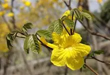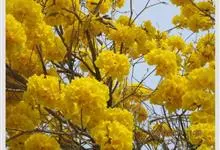 黄金风铃木Nichols),别称:黄花风铃木、黄丝风铃木、金花风铃木、伊蓓树、毛风铃、巴西风铃木。原产墨西哥、中美洲、南美洲,是巴西的国花。每年3、4月开花,花冠漏斗形、五裂,似风铃状,花缘皱曲,花…全部>>