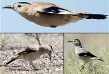 黑尾地鸦:体羽沙褐色,额、头顶以至后颈呈发金属紫蓝辉的黑色。头侧乳黄色。整个背面,包括两肩葡萄褐色。翅的中、小覆羽与背同色,最外侧的小翼羽白色;大覆羽呈发紫蓝色光辉的黑色;初级飞羽白色,…全部>>