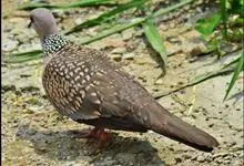 珠颈斑鸠,别名花斑鸠、珍珠鸠、花脖斑鸠、鸪鹪,是鸠鸽科副斑鸠属鸟类。体型中等,体长27~34cm,体重120~205g,雌鸟和雄鸟羽色相似,但雌鸟不如雄鸟羽色亮泽。珠颈斑鸠前额至头顶羽色稍淡,…全部>>