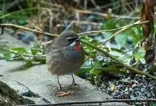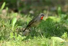 红点颏:是鸟纲、鹟科的鸣禽。又名西伯利亚歌鸲。体长14-17厘米,体重16-27克。雄鸟头部、上体主要为橄榄褐色。眉纹白色。颏部、喉部红色,周围有黑色狭纹。胸部灰色,腹部白色。雌鸟颏部、喉部不呈赤红色,…全部>>